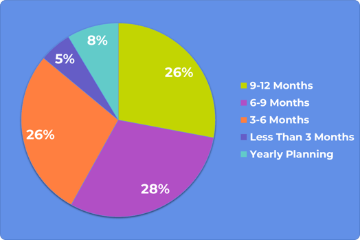 In a recent survey we conducted, 26% of exhibitors reported starting 9-12 months before the show, 28% reported starting 6-9 months before, 26% reported starting 3-6 months before, 5% reported starting less than 3 months before, and 8% do yearly planning for all trade shows (the remainder were not part of the planning process).