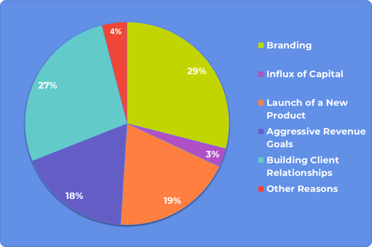 What drives companies to scale up to a large exhibit space? In a recent survey we conducted, 29% of exhibitors reported branding as their driver, 27% said building client relationships, 19% reported the launch of a new product, 18% reported aggressive revenue goals, 3% reported an influx of capital, and the remaining 4% reported other reasons.